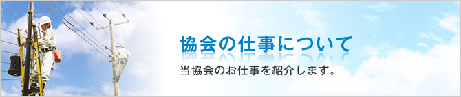 協会の仕事について 住宅電気工事センター住宅電気工事センターの主な業務を紹介しています。 電気使用安全月間当協会による、経済産業省主唱「電気使用安全月間」への取り組みを紹介しています。 漏電遮断器・感震ブレーカー取付推進運動当協会は電気災害や電気火災を防ぐため、漏電遮断器と感震ブレーカーの取り付けを推奨しています。(左写真は漏電遮断器) 施工証明制度電気工事の品質向上の為に、施工証明書を発行しています。 不適合工事ゼロ運動電気災害の防止や、電気工事品質の向上に向け、「不適合工事ゼロ運動」を実施しおります。 電気安全・保安講習会専門的技術や知識等の普及や人材を育成に努めています。 環境理解推進事業地域社会に電気使用の合理化やエネルギーの効率的活用の普及啓発活動を行っております。 災害発生時の為に災害発生時における協力体制の調査・研究および応動訓練の実施に関する事業を紹介しています。 機材の推奨制度安くて信頼のおける設備作りを目的に「優良機材推奨認定制度」を運営しております。